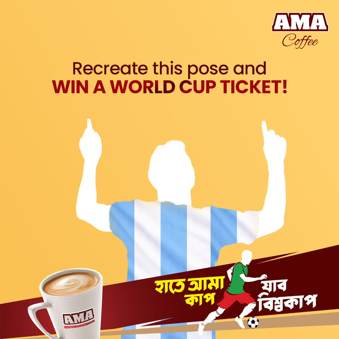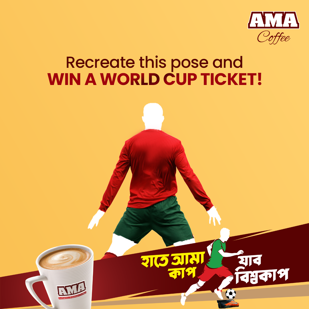 AMA Coffee World Cup Microsite-এ নিজের পছন্দের ফুটবল পোজ অনুসরণ করে ছবি বানান আর জিতে নিন দারুণ সব পুরস্কার।